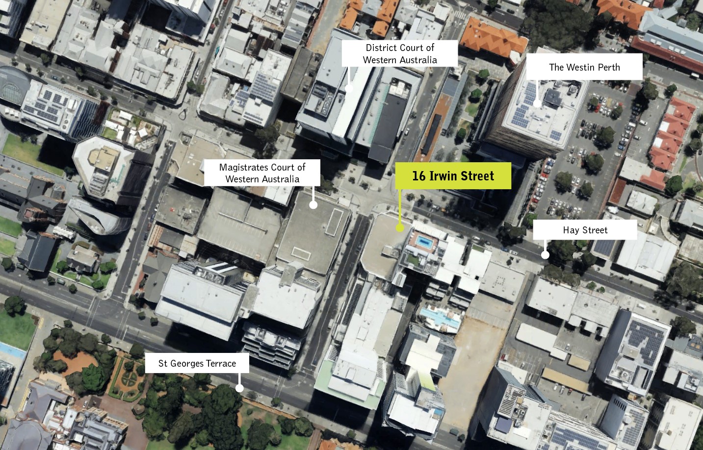 • Strategic location directly opposite the Perth District & Magistrates Courts, and in close proximity to the State Administrative Tribunal,